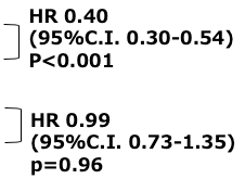 | 中央値 | HR 1.01 (95%C.I. 0.74-1.37) p=0.97 |
